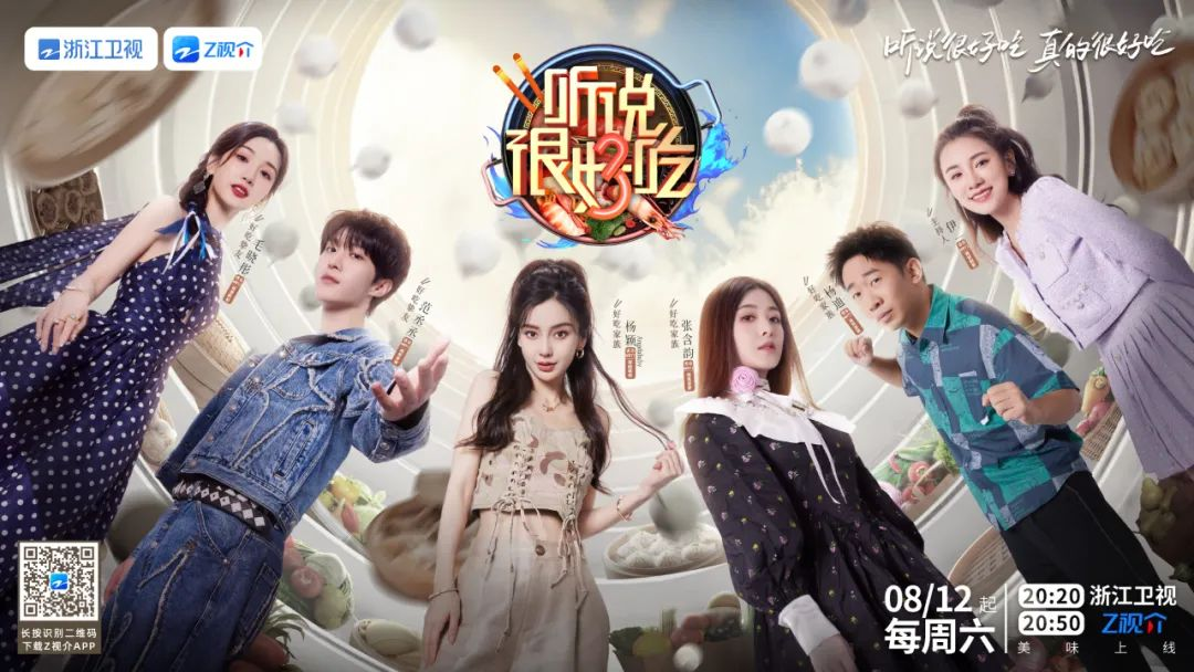 浙江卫视创意美食真人秀《听说很好吃》第三季定档,于8月12日起,每周六晚20:20在浙江卫视播出、20:50在z视介上线。本季节目由杨颖、张含韵、杨迪组成“好吃家族”,与“好吃挚友”范丞丞、毛晓彤以及主持人伊一,共同为大家带来一场美味与趣味并存的创意美食体验。