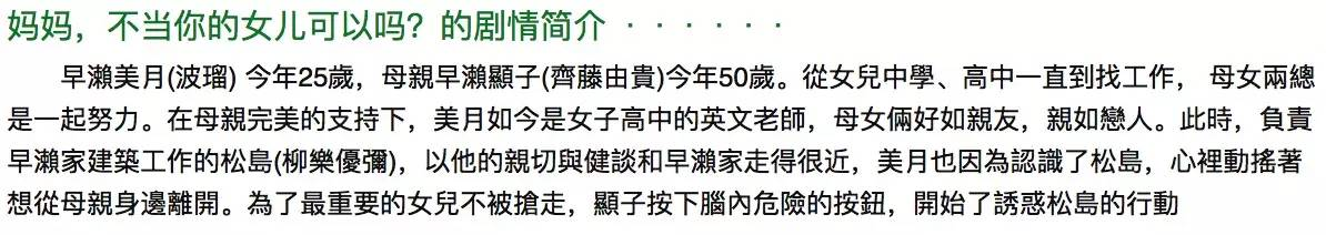 光看这个剧名就很了不得了,《妈妈,不当你的女儿可以吗》……