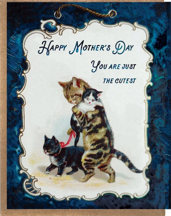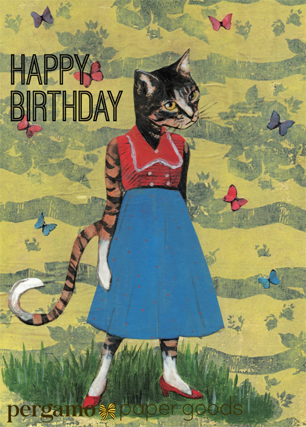到了20世纪50、60年代,女人和猫的关系更加紧密。猫经常和女人同框出现在各类祝福卡中(图2、3),或者,人们直接用猫代表女性(图4、5),这类祝福卡生动又幽默,为亲朋好友带去愉悦和快乐。