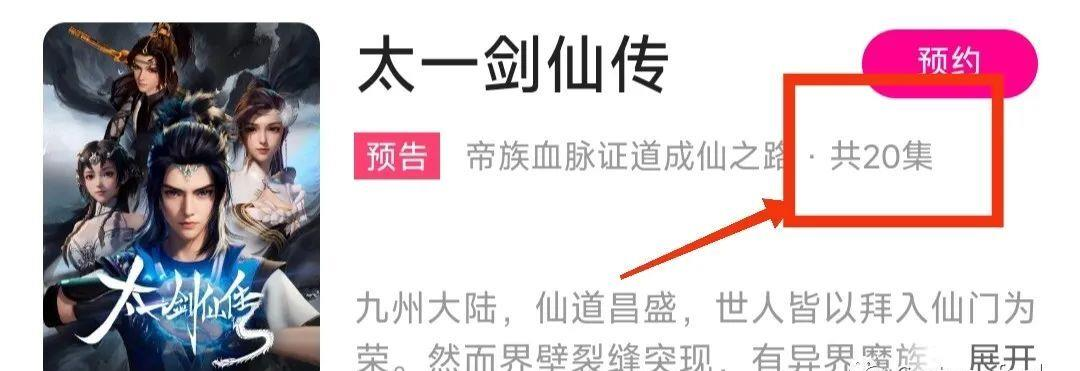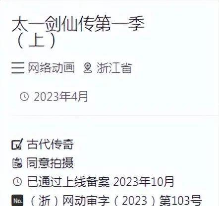 《太一剑仙传第一季(上)》已经通过了上线备案。然而,令人困惑的是,《太一剑仙传》动画在优酷的宣传页上显示的集数却只有20集。