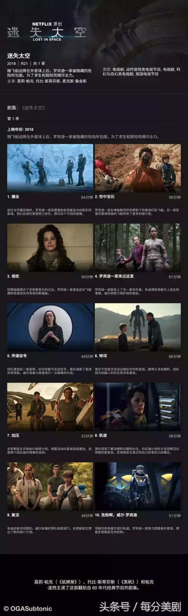 随飞船迫降在外星球上后,罗宾逊一家被隐藏的危险所包围,为了求生和脱险而竭尽全力。