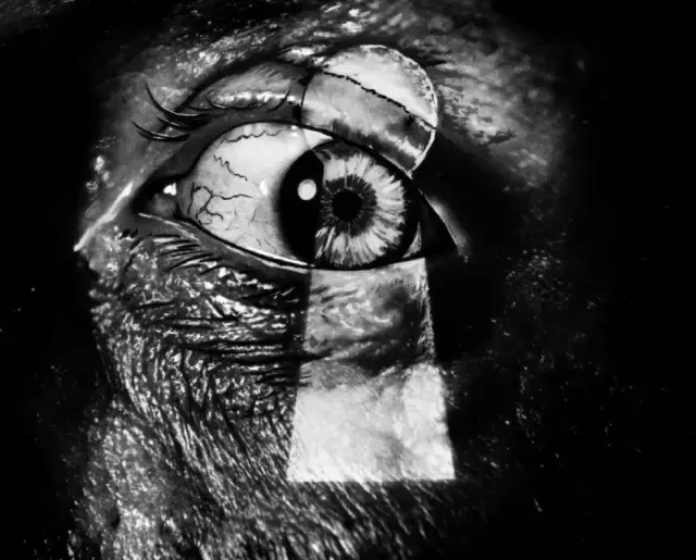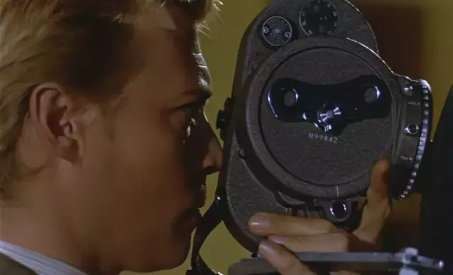 《偷窥狂》在《偷窥狂》和《眩晕》的叙事正式开始之前,影片中都出现了巨大的眼睛特写,这仿佛是想在第一时刻引入视觉与主观性的主题。在《偷窥狂》中,我们看到的是闭合的眼睑,我们发现眼睑之下眼珠的快速运动,表示这个眼睛的拥有者在做梦;然后,这只眼睛大大地睁开了,我们由此进入故事,一个具有梦幻般或者说噩梦般浓缩逻辑的故事。