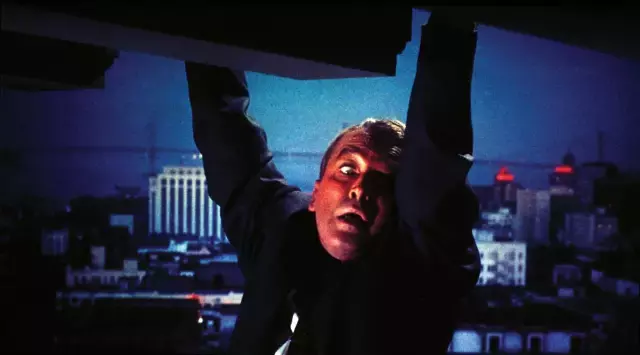 在《眩晕》的开场,詹姆斯·斯图尔特也是一位幸存者,他看到自己的警察同事掉了下去,然后他用手指握住了水槽,他的下面是万丈深渊。就自然主义的标准来看,这件事情和尼文坠机却没死一样很是荒诞:正如罗宾·伍德所指出的那样,“看起来,这根本是不可能的事情。这样做是为了传达一种效果:在这整部电影中,他都被象征性地悬挂在万丈深渊之上”。