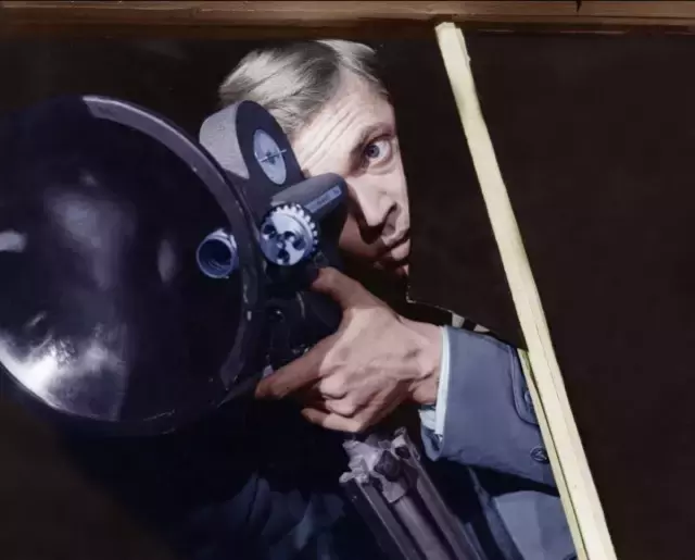 《偷窥狂》这倒是会让我们想起这两位最伟大的英国导演之间的联系,纵观他们的职业生涯,有着惊人的共通之处,当然也有所不同。鲍威尔比希区柯克小6岁,曾于1920年代晚期和他共事过,他们合作的作品最著名的便是《敲诈》(blackmail,1929)。