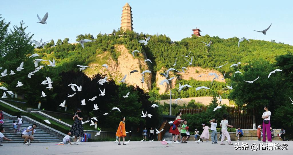 一群白鸽从延安宝塔山前飞过。王德荣 摄