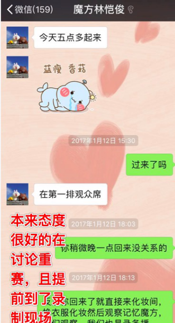 4、还有一个很重要的点:节目组之前请来证明逆拧没有作弊的那波魔方圈专业人士,他们和林恺俊的关系都很好,在帮节目组录视频前为什么不问一下林恺俊的看法,而是节目组让发什么发什么?然后在节目播出之后陆续站出来翻供,难道是想让毫无戒心的节目组发出来,最后啪啪打脸?就好像有人让我公开证明我的朋友输了,我不是应该先去向朋友了解情况,然后再决定录不录吗?能让这群魔方圈权威人士作出一致举动的,一定是魔方界有钱有势有人脉的大集团!