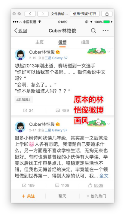 2、林恺俊微博,原先只是自己自娱自乐,语气也轻松可爱。节目播出之后文风突变,不仅细心地规避了很多法律问题(比如“造假”加了引号),还引用很多古文,文章几乎滴水不漏