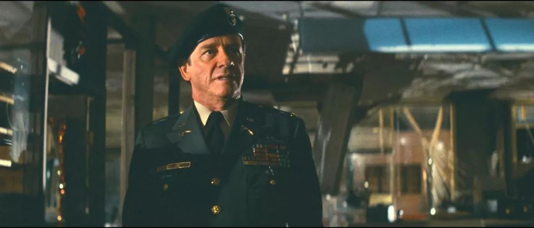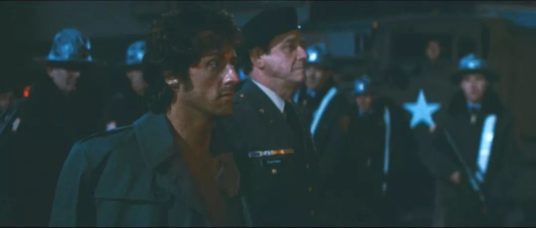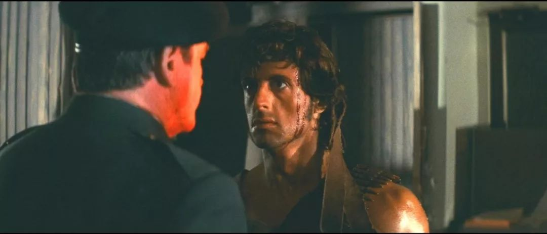 电影的最后,兰博躲到警察局里被重重包围,这个时候他的旧上司特劳特曼上校来劝说他放下武器出来投降。