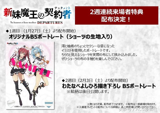 上栖缀人撰写的热门轻小说《新妹魔王的契约者》,将在1月27日于日本进行2周限定的的新作ova《新妹魔王的契约者departures》特别放映,让观众以大萤幕享受最新的动画内容。随着上映日的接近,官方也释出了更多资讯,近期已公开blu-ray / dvd和戏院观影特典的内容。