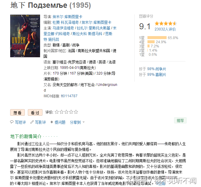 小编安利一部拉斯拉夫的电影《地下》,前南斯拉夫史诗巨制,借用网友的一句话:流水的政权铁打的绿茶婊