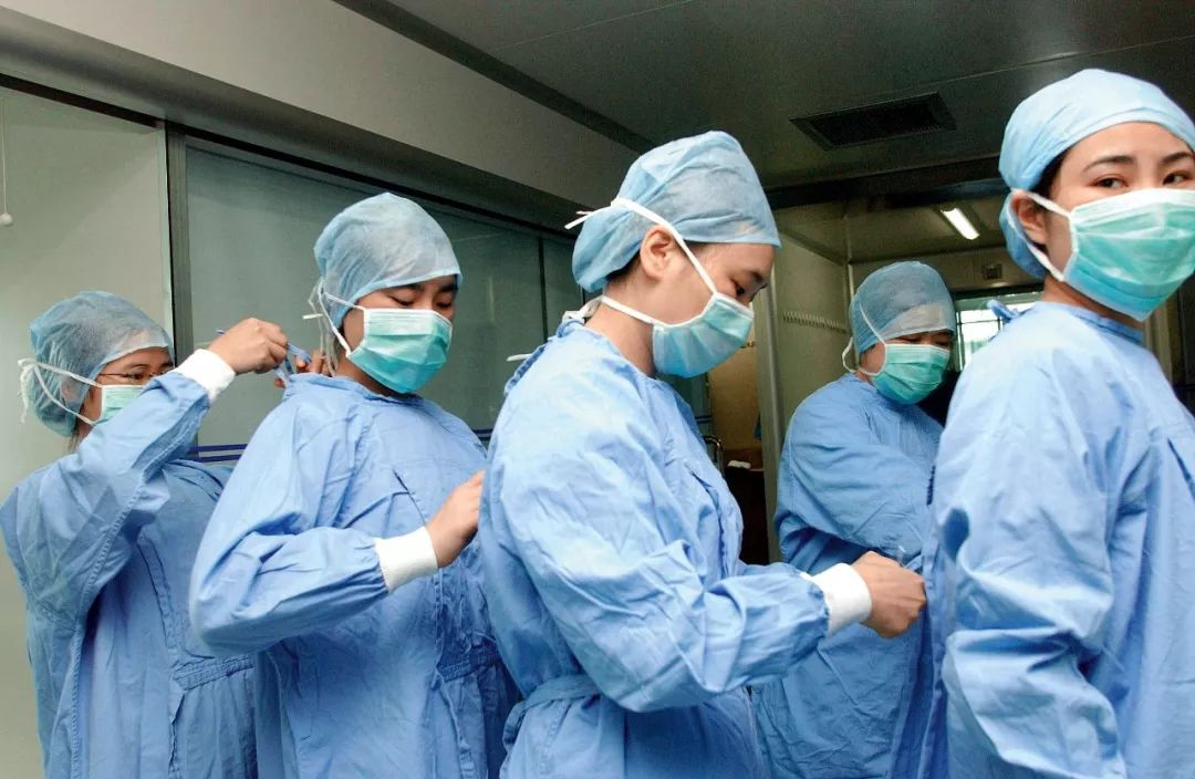 这些医护人员身着简单的防护服战斗在抗击“非典”的最前沿