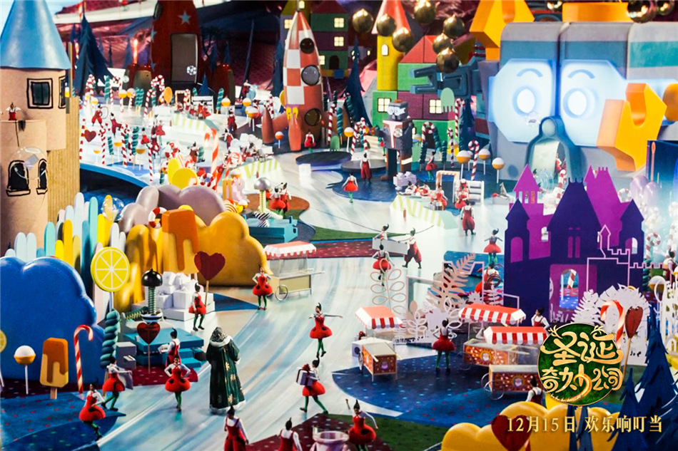 无疑,《圣诞奇妙公司》为我们打开了一道奇观的大门,这部投资额超过3000万欧元的法国史上最贵的合家欢电影,用视听的震撼和刺激告诉我们,巨额投资并没有白花。故事开篇映入眼帘的,便是庞大又运转有序的圣诞公司,精灵们一边收集来自全球小朋友们的圣诞礼物,一边为他们定制每个人的专属愿望,这是一个快乐的工厂,也是一个制造快乐的工厂,充满了各种奇思妙想。但剧情也由此急转而下,一个精灵突然病倒,如多米诺骨牌一般,九万多名精灵接续病倒,圣诞公司瞬间停转,而圣诞节却已遥遥在望,如何救治精灵,如何拯救公司,如何维护全地球的圣诞欢乐,成了当下刻不容缓的重要任务。