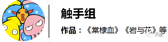 触手组,由编剧海月,漫画悠羽,后期尼莫组成,也就是大家熟悉的水下三人组:水母+鱿鱼+尼莫组成,作品有《岩与花》《棠棣血》等。