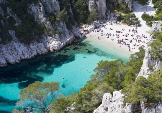 这是法国自然遗产中名副其实的奇观。如果想要在这片清澈见底的峡湾中游泳,必须步行40至50分钟。但这却是完全值得的。小小的峡湾两侧是石灰岩峭壁,胆子大的话,还可以在峡湾内跳水。这片海滩不仅有着绝美风景,同时也可以让人尽情娱乐。