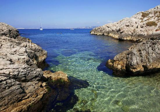 它在一个闭塞峡湾的尽头,如同一个与世隔绝的天堂。驶离马赛市中心仅20分钟,我们便可以看到这里与城市截然不同的自然美景。自然形成的海滩四周布满了岩石和茂盛的植物,让人不由自主地以为身在度假天堂塞舌尔。