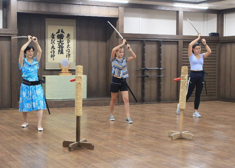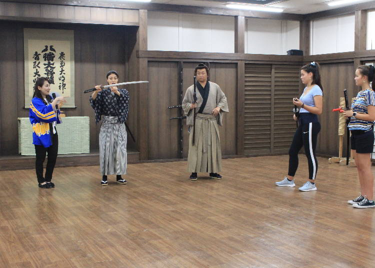 武士讲座(免费)会从刀的说明开始,教大家拔刀方式、挥刀方式、握刀方式等,刀在手中的手势步伐。武士讲座吸引人的是,只要在腰上绑上腰带,初学者也能简单地体验当武士。讲座的教学方式是,首先老师会先示范给大家看,大家学习老师的动作。不需要特别预约,从讲座开始前10分钟开放报名参加。※有英文解说。