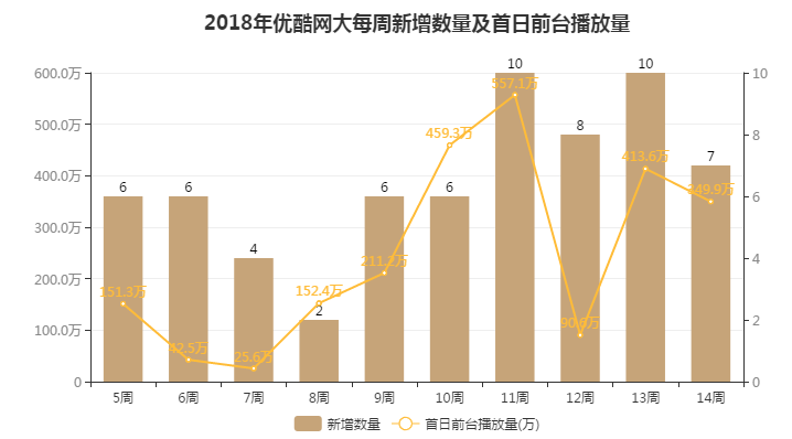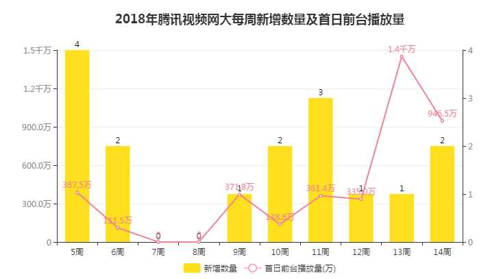 本周新上线网大39部, 较上周减少了2部, 前台播放量方面,收获了1992万的首日前台播放量, 较上周减少718万。总体而言,第14周新上线网大数量和首日前台播放量的数据是一个正常的波动幅度。