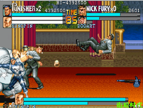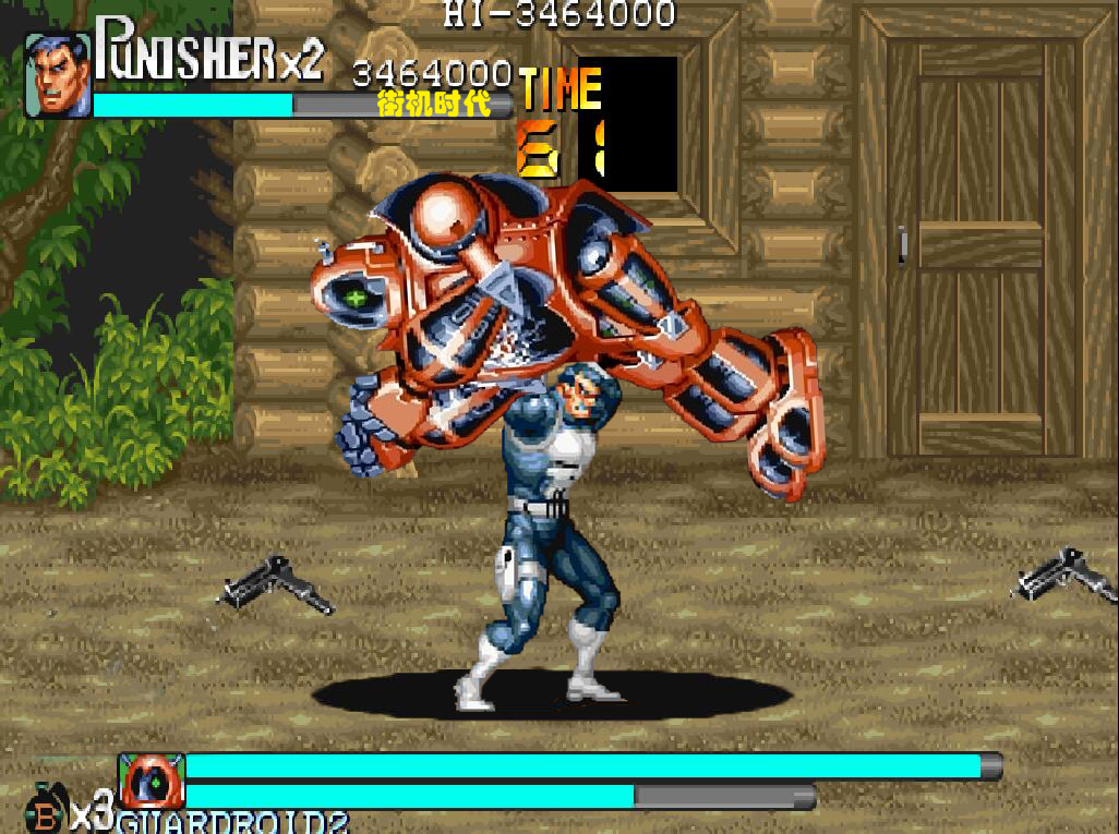 大家比较熟悉的清版过关游戏《惩罚者》,其中出现的两位主角分别是十级特工弗兰克和神盾局长尼克·弗瑞。因为是发生在漫威中的剧情,因此两人的力量都是比较强大的。可以轻松取下铁门当武器,破坏门柱、打断铁管、破坏设施,而地上的沙袋、机器人下半身、武士矛、甚至敌兵身体经常被他们用来做武器。