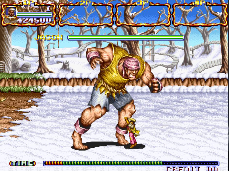 不过在最终关卡时,金并倒地之后我们去拾取的话,就会感到举人动作有一定程度的减缓,很明显系统表达的意思就是举起来很吃力,这也是横板过关游戏中非常罕见的体重影响效果。这让我想起了《怒之铁拳3》,举胖子反而被压的场景,好在没有在这款游戏中发生。
