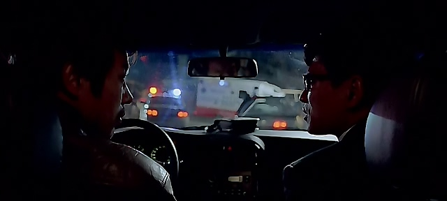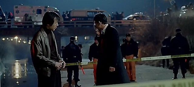 请注意朴忠培的表情。警察封锁了现场,全俊伍坐在警车上,接受升警官盘问。
