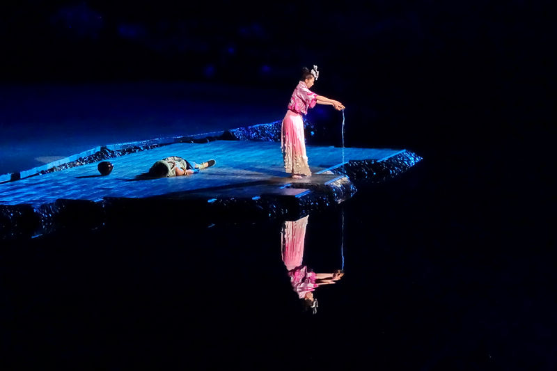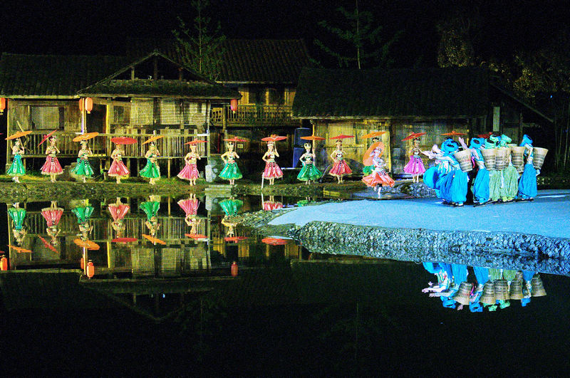 宏大的场景,绚烂的灯光、雄浑的音乐、优美的绝壁风光各种精美的舞美制作交相辉映,给观众的视觉和听觉上演绎了一段经典的天地恋歌,峡谷绝唱。