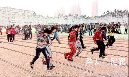 在满族人的体育活动中,有一个项目叫做“二人三足”赛跑。