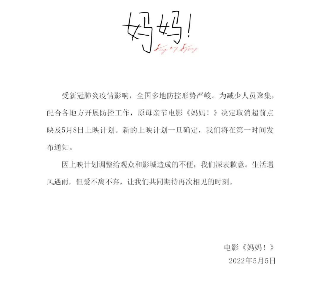 这一定是一部特别温暖的电影,受疫情影响,原计划母亲节上映,宣布新档期待定,希望疫情赶快消散,我们能和《妈妈!》早日相见。