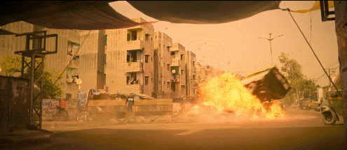 从房间内,楼梯间,高空坠落到车体爆炸,摄影师紧密跟随,几乎是一气呵成的沉浸式体验。