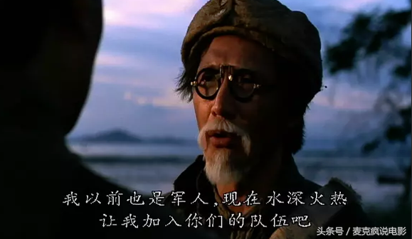 而《财叔》中有这样一幕场景,如今看来,不免让人感慨万千:壮志未酬的财叔本想要随军上阵,却被军官婉言谢绝,让他生火做饭。他唯有望着生锈的宝刀独自兴叹,再映衬着”枯藤老树昏鸦”的背景,显得凄凉无比。没想到失意落寞的财叔,竟成为石天影坛生涯的最后写照。