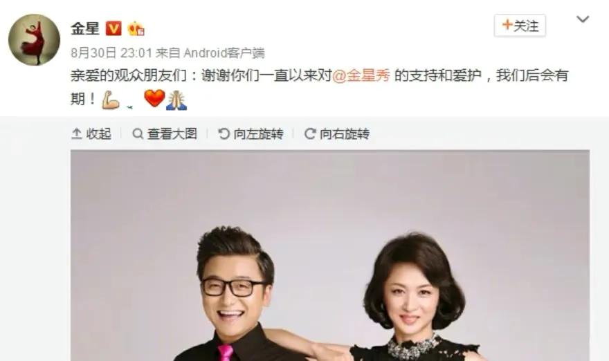 2017年9月1日,金星发文宣布《金星秀》停播。因为节目播得好,遭“小人”的嫉妒,节目就被撤掉了。