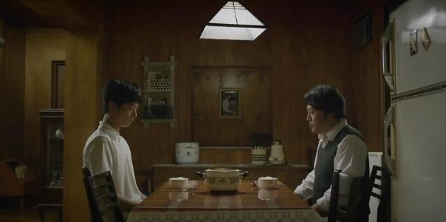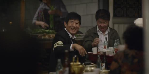 还有一个细节,德善爸爸在葬礼后遇到了阿泽,两人坐在胡同口喝酒聊天。