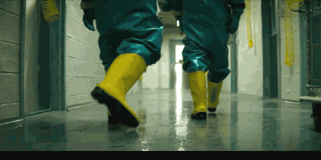 如果说《切尔诺贝利》的成功绝大部分是建立在黑暗以及盖革计数器的噪声中,那么《血疫》主要建立在生化防护服上面了,,每次看到居中人物脱衣,穿衣,消毒,封闭,最后穿上密闭的防护服,那种紧张感骤然升起。