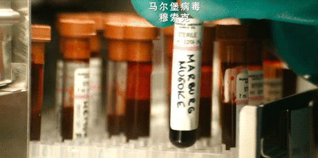 剧情接着发展,在美国军方实验室里,名为穆索克的“马尔堡病毒”样本被封存!很不幸,穆索克就是上面那位医生,他也被感染了。