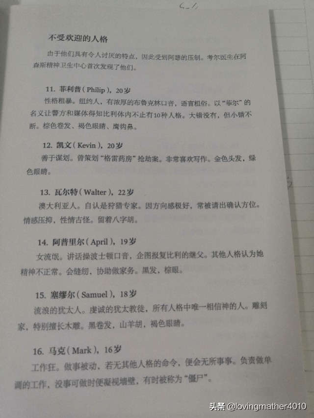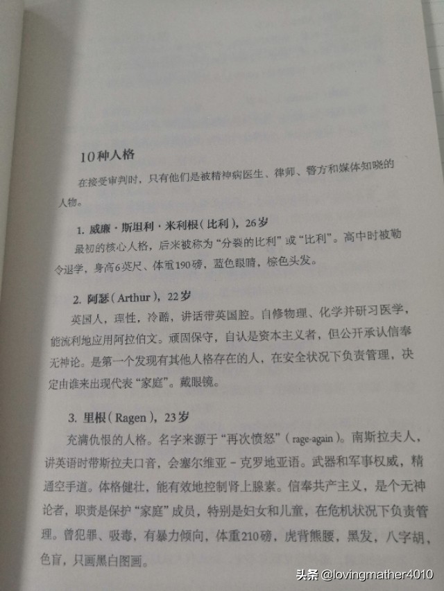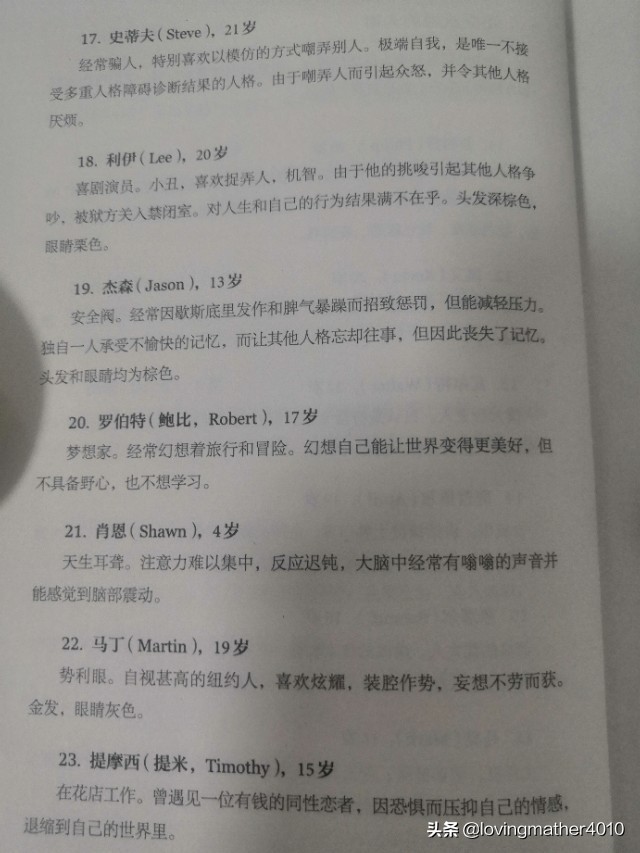 本书的作者丹尼尔?凯斯也整理出了他所有的二十四种人格。