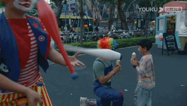 比如小丑在卖力表演,却被熊孩子抹了一脸冰激凌。