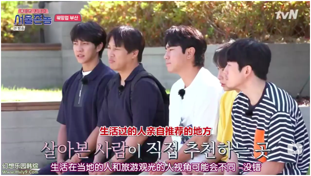 节目中到访的地点其实都是和嘉宾生活息息相关的地点,这样一来釜山之行就更个人化,而非普通观光。也就是说,虽然李晟基和车太贤在完成观光的主线,也以首尔乡巴佬的身份撑起了节目主题,但更大的展现空间其实给了釜山,以及釜山人张赫、李施彦和simon d。