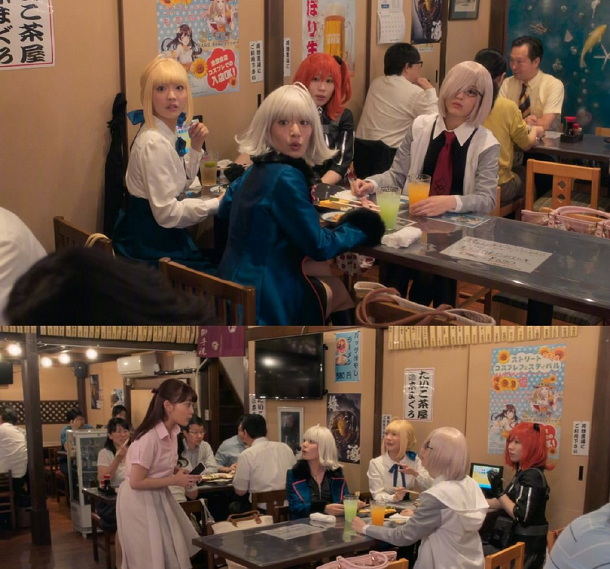 这部剧出现《fate》相关要素还是有不少的,其中最显眼的自然就是cosplay,玛修、呆毛王、咕哒子、女帝、红a什么的就不说了,台词中也提到不少“英灵召唤”之类的,顺便一提,拾部君也喜欢fgo里面的大胸角色;