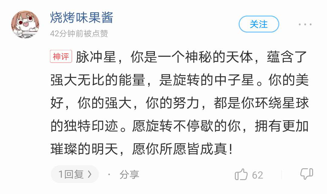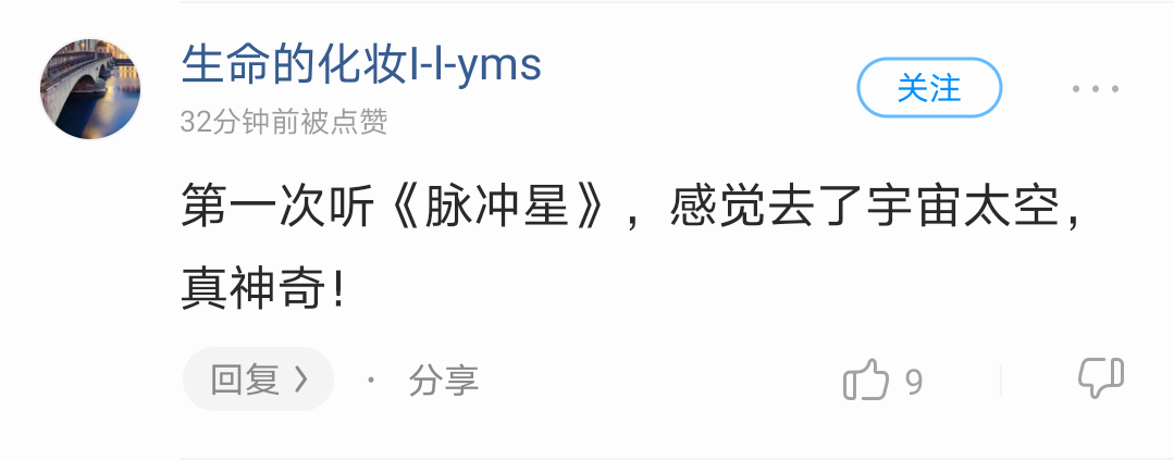 甚至还有网友,自发的为大家普及起关于脉冲星的知识。感觉这不仅是在听一首歌,更像是走进了天文馆,被知识包围。