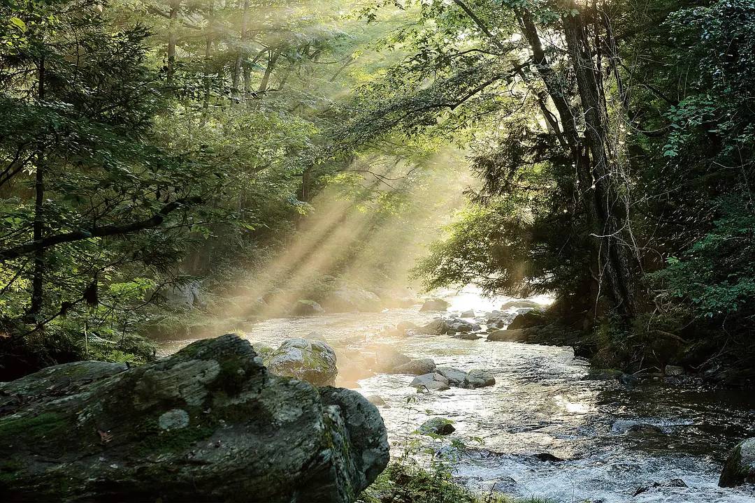 小镇的树林、溪流、各种鱼的镜头不断出现,