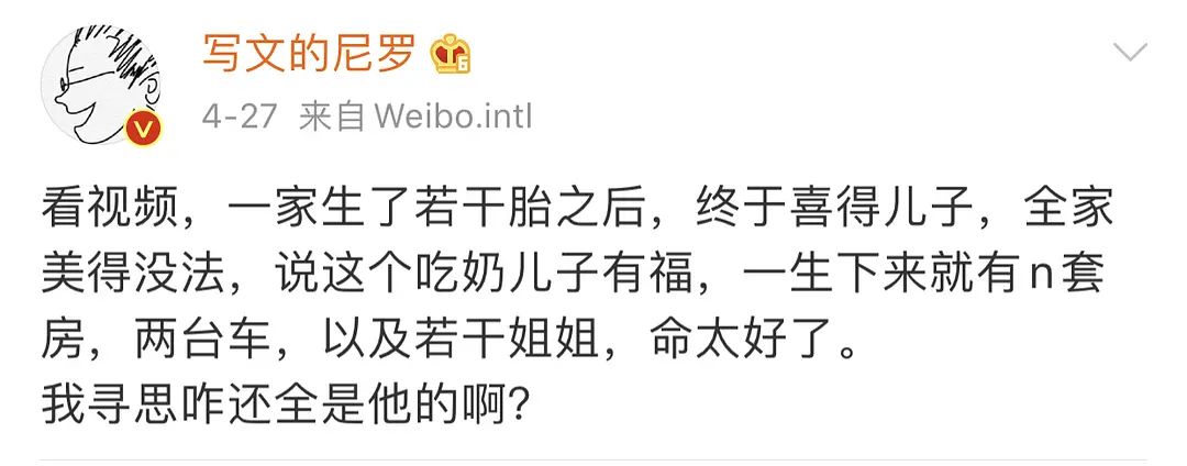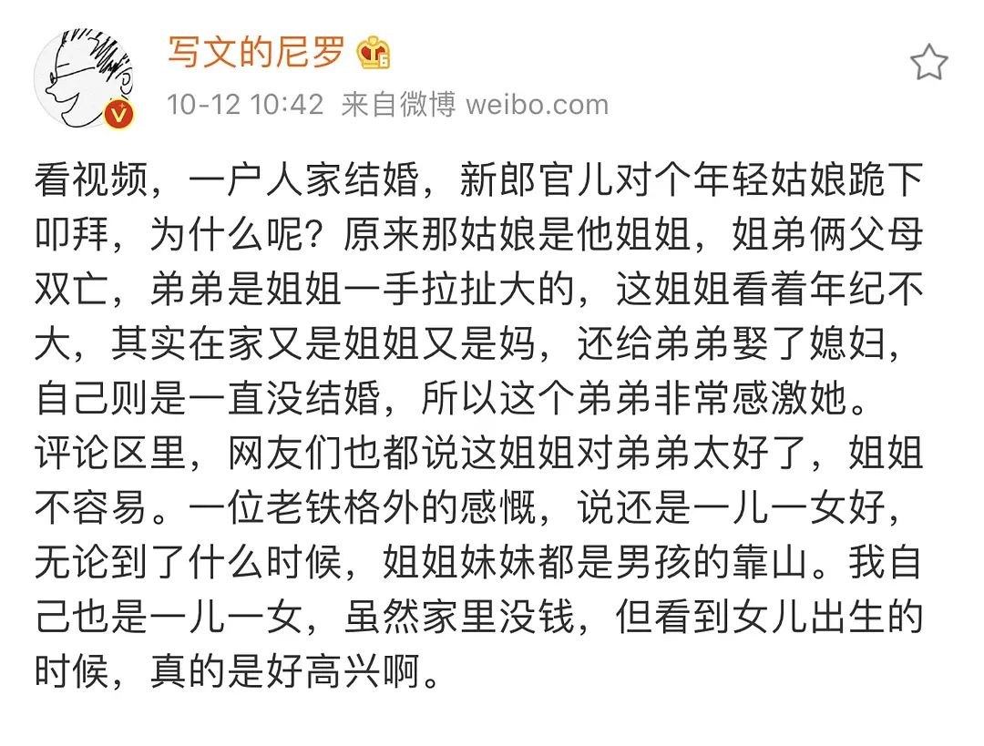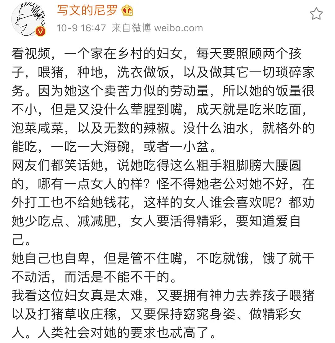 《无心法师》作者尼罗发了许多当代中国女性生存状态的微博,主页君在看这些微博的时候,仿佛置身于上个世纪。