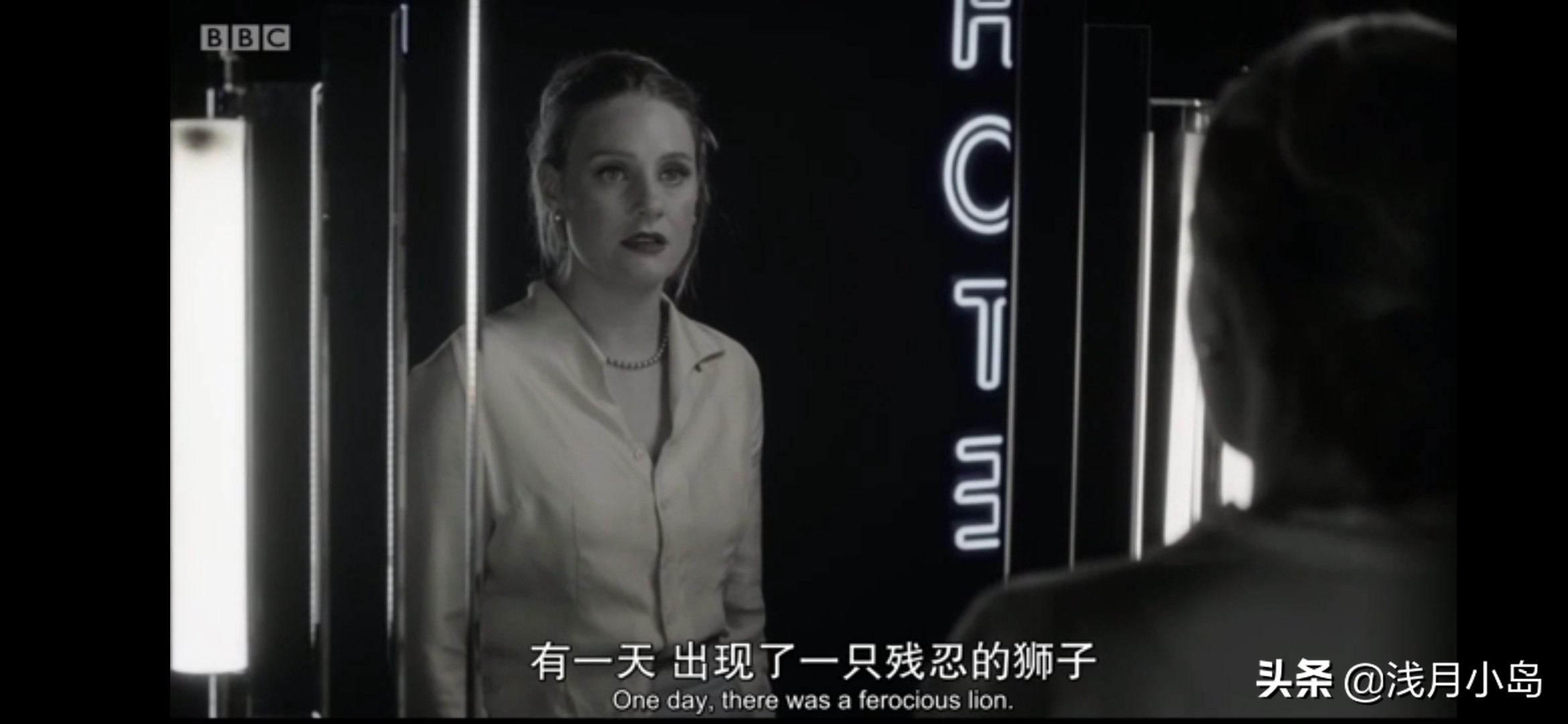这一段不再是单调的独白,而是利用旁白,环境音,再现女主内心的痛苦与纠结:在她的想象中,她化身为那只勇敢的小兔子,将残忍的狮子骗到悬崖边,狮子纵身跳进了深渊,她则成为了森林所有动物的救命恩人……