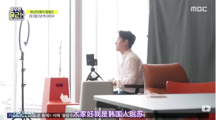 比如珉苏在录制中国社交平台的粉丝答谢视频时,节目镜头切到了较远的全景,这样能够更好的展现珉苏的工作状态。
