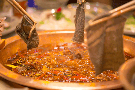 几十根签一把抓住放入各种沸腾的麻辣汤料中,
