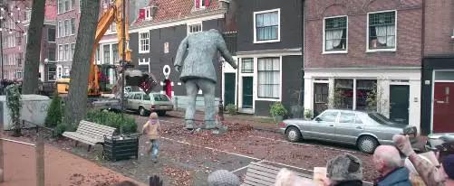 顶层的玻璃后面,作者annie m.g. schmidt 的蜡像端坐其中。