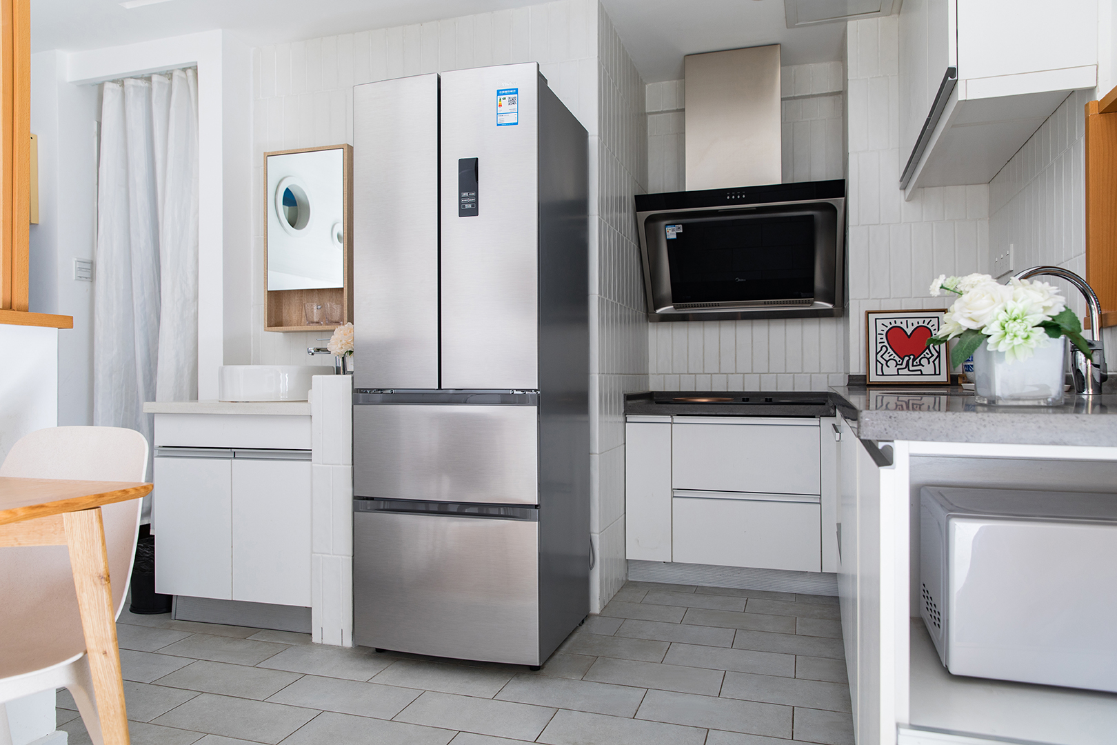 美的323冰箱采用了冷藏室对开+双抽屉的设计风格,冷藏室经典对开门设计,第一眼看上去打造高级品质感。90度直角开门让冰箱可以放在墙角时开门无障碍。这款冰箱配色使用了梦幻星际银,搭配以上精妙的外观整体设计,卓越质感尽显,更能映衬出整体装修的轻奢美感,让你第一眼就爱上。