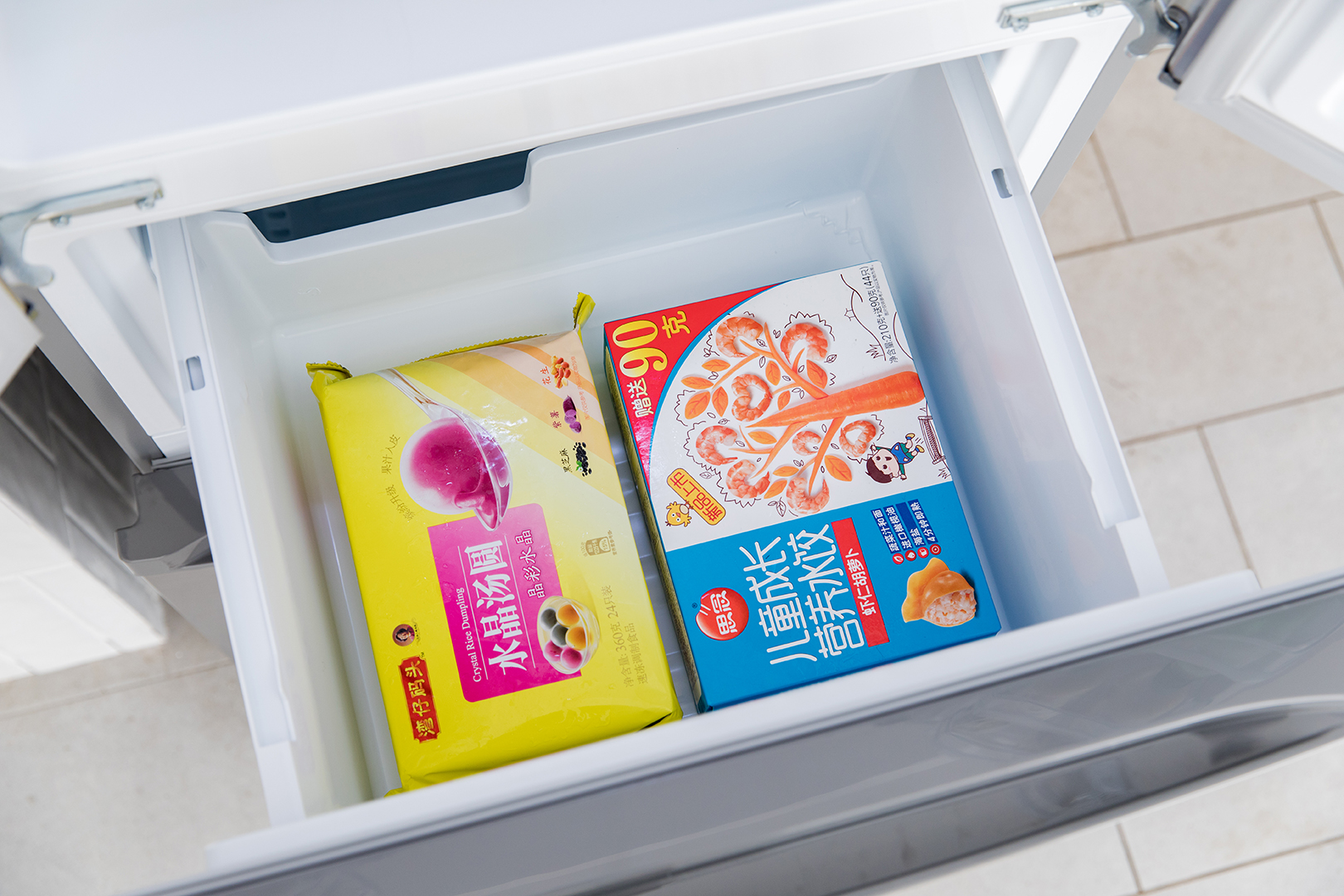 冷冻室的抽屉设计十分雅致,延续了外在设计的极简风格,坚硬细腻且有光泽,凸显出高端冰箱的不凡质感。双层冷冻门可以直接拉开,这样做的好处就是在墙边使用的时候更好地避免磕碰,小空间也能轻松开门。