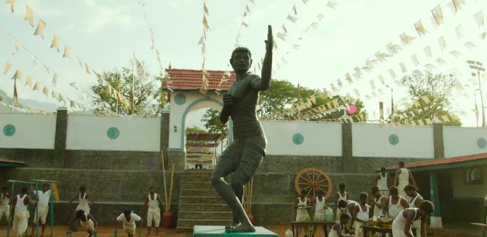 整个故事就是印度电影里常见的三段式架构:儿子出场——回忆父亲——替父报仇(《巴霍巴利王》也是这个套路),可以说是毫无新意,期间还夹杂了很多废戏,如萨迪的感情戏,简直是又臭又长,而其核心主题也没能跳脱常规,依然是印度电影中惯常的个人英雄主义与正邪两立。