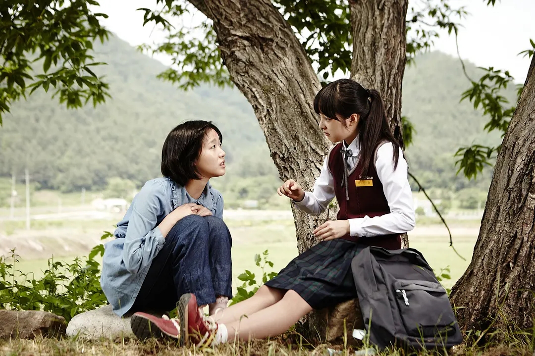 福顺与娜里穿越森林、小溪,本是一场沉重的报仇之旅,但影片色彩鲜明的远景灿烂美好与轻音乐表现出了她们的天真烂漫。