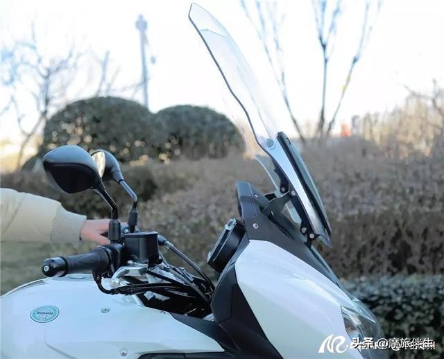细节3描述:这次更新为车辆装上了一块巨大的风挡,且支持无级电动调节,能提供很好的风阻保护。遗憾的是并没有配备加热手把与加热坐垫功能,希望以后可以出配套的改装件吧。标配的护杠可以保护发动机与车壳在摔车后免受损坏。