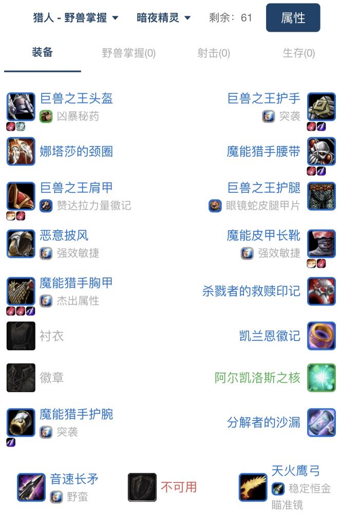 最后免责声明,由于本人tbc从未玩过猎人(tbc万年盗贼,60级taq前玩过猎人,后来由于wcl全程橙色打不过其他职业紫色蓝色遂放弃这个职业)文中难免有错误和不严谨的地方,大家交流讨论,轻喷,也希望有更多的猎人高手可以分享干货(比如不同攻速下的一键宏设置),而不是千篇一律的讨论t3tx这种无聊的东西。